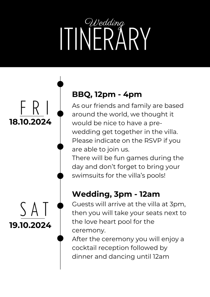 For the day of the wedding there will be a one-way shuttle arranged from the Promenade at St Laurent du Var to Villa les Roses.