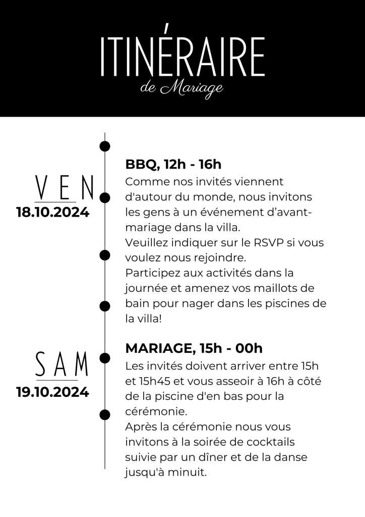Le jour du mariage, un bus partira de St Larent du Var pour la villa. Un bus de retour n’est pas prévu pour le moment.